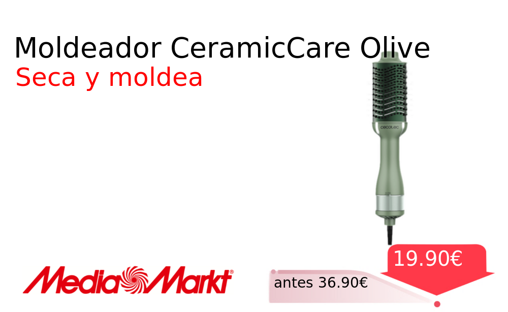 40% 📉 Vaya descuentazo‼‼ Moldeador CeramicCare Olive❗️🆕 #MediaMarkt 📛Precio Ya 19.90€❗️ (PVP: +36.90€) ✨Peine moldeador 2 en 1 con cerámica que seca desenreda y da volumen profesional Tres niveles de temperatura para cuidado avanzado del cabello. cholloya.com/CECOTEC_CERAMIC