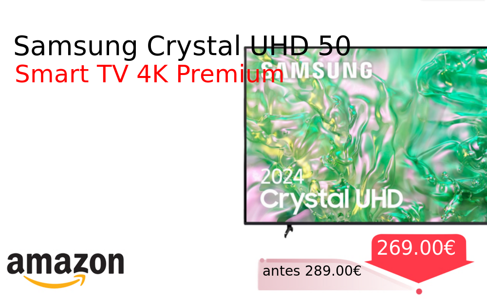 Buen Precio✨ Samsung Crystal UHD 50❗️🆕 #Amazon 🇪🇸 📛Precio Ya 269.00€❗️ (PVP: +289.00€) ✨Televisor inteligente Samsung con pantalla Crystal UHD 4K de 50 pulgadas Colores vibrantes y sistema de sonido envolvente Q-Symphony Base ajustable para mejor visualización. cholloya.com/TV_SAMSUNG_50DU