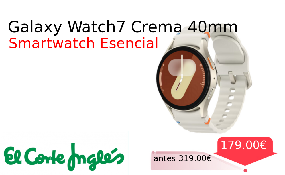 40% 📉 Vaya descuentazo‼‼ Galaxy Watch7 Crema 40mm❗️🆕 #Elcorteingles 📛Precio Ya 179.00€❗️ (PVP: +319.00€) ✨Reloj inteligente con diseño elegante y funciones avanzadas para tu día a día Monitoriza actividad física y notificaciones importantes de manera eficiente. cholloya.com/SAMSUNG_WATCH7_