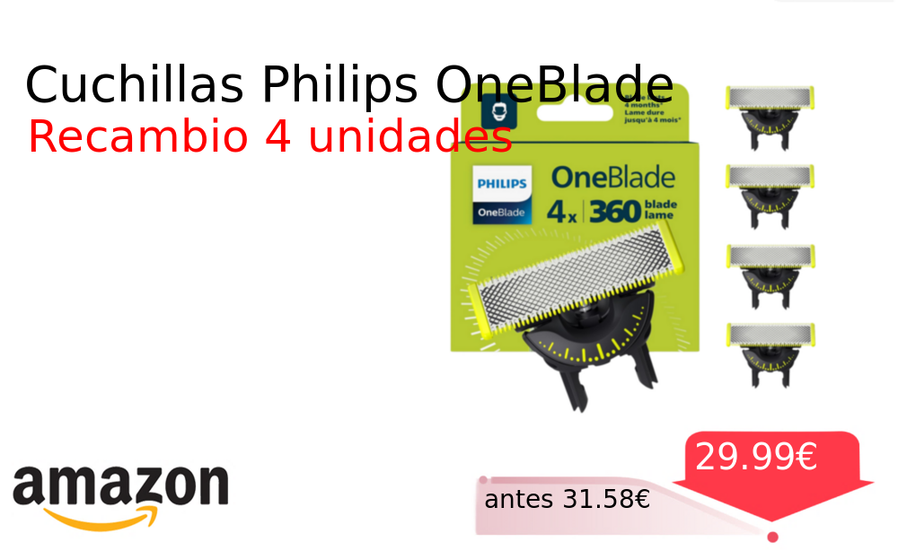 Buen Precio✨ Cuchillas Philips OneBlade❗️🆕 #Amazon 🇪🇸 📛Precio Ya 29.99€❗️ (PVP: +31.58€) ✨Afeitado preciso y cómodo con estas cuchillas de larga duración Compatibles con todos los mangos de la serie garantizan un resultado profesional y suave. cholloya.com/PHILIPS_QP440_5