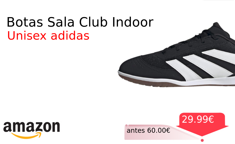 Mitad de precio✂️ Botas Sala Club Indoor❗️🆕 #Amazon 🇪🇸 📛Precio Ya 29.99€❗️ (PVP: +60.00€) ✨Botas de fútbol sala unisex adidas Club Indoor Diseño clásico versátil y duradero para un rendimiento óptimo en superficies interiores. cholloya.com/ADIDAS_CLUB_IND