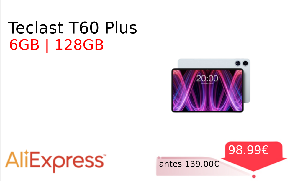 ¡¡Ojo a la ganga!! 📛 Teclast T60 Plus❗️🆕 #AliExpress 📛Precio Ya 98.99€❗️ (PVP: +139.00€) ✨Pantalla 2K de 12" con 90Hz para una experiencia fluida, Android 14, batería de 8000mAh y 4G LTE. Ideal para productividad y entretenimiento móvil. cholloya.com/TECLASTT60PLUS