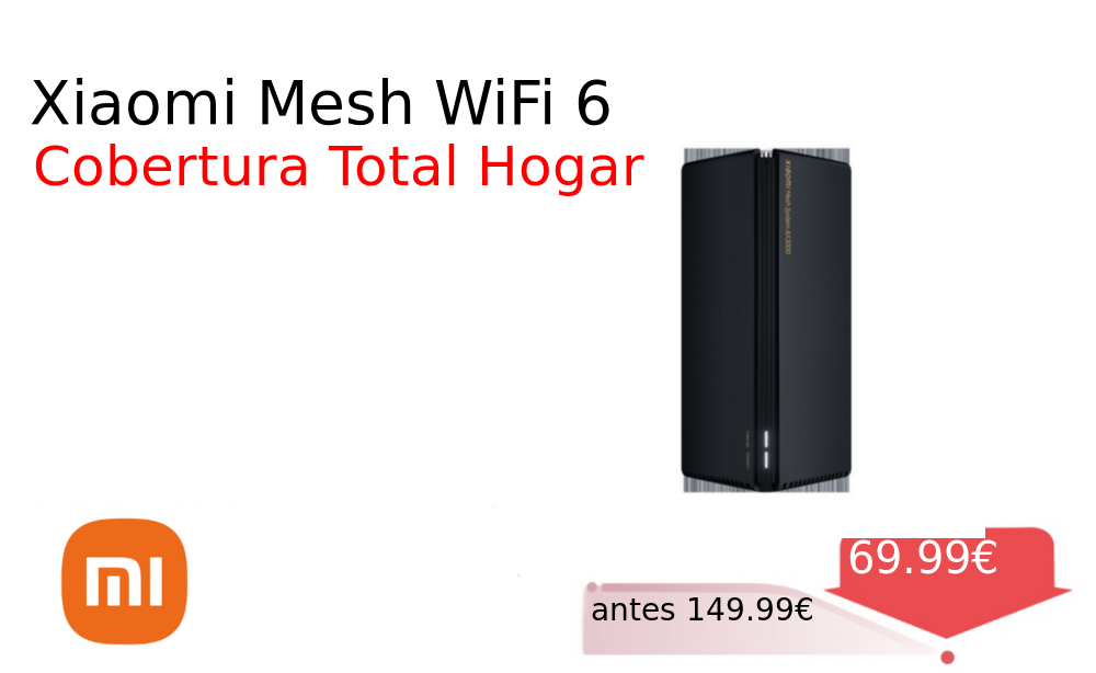 Mitad de precio✂️ Xiaomi Mesh WiFi 6❗️🆕 #Mi 📛Precio Ya 69.99€❗️ (PVP: +149.99€) ✨Sistema de malla WiFi 6 de alta velocidad con dos nodos Cobertura total para tu hogar sin zonas muertas Tecnología avanzada y fácil configuración. cholloya.com/XIAOMI_MESH_AX3