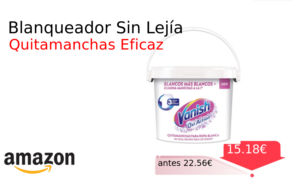 Más de un 30% 🚀 Blanqueador Sin Lejía❗️🆕 #Amazon 🇪🇸 📛Precio Ya 15.18€❗️ (PVP: +22.56€) ✨Elimina manchas difíciles y blanquea tu ropa blanca con este polvo sin lejía Resultados profesionales y cuidado óptimo para tus prendas favoritas. cholloya.com/VANISH_OXI_ACTI