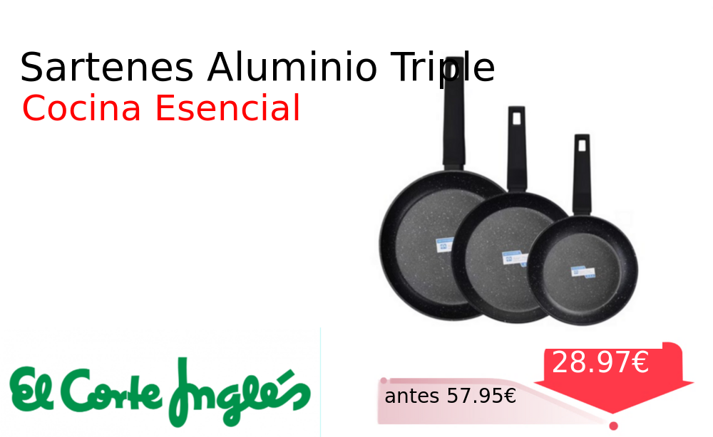Mitad de precio✂️ Sartenes Aluminio Triple❗️🆕 #Elcorteingles 📛Precio Ya 28.97€❗️ (PVP: +57.95€) ✨Juego de tres sartenes de aluminio para cocina diaria Excelente distribución del calor y durabilidad garantizada Ideal para preparaciones variadas con resultados profesionales. cholloya.com/SARTENES_ALUMIN