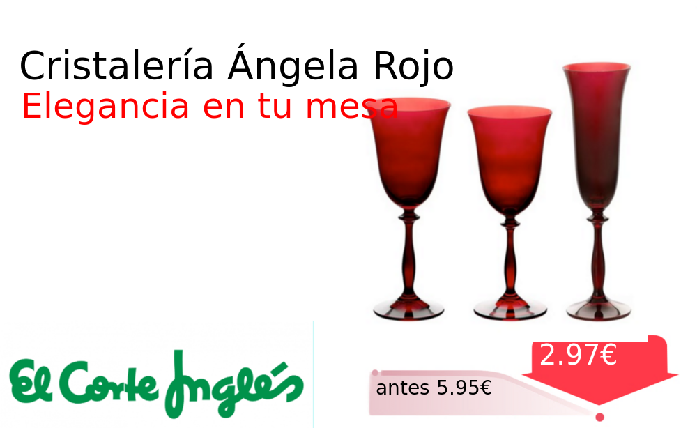 Mitad de precio✂️ Cristalería Ángela Rojo❗️🆕 #Elcorteingles 📛Precio Ya 2.97€❗️ (PVP: +5.95€) ✨Cristalería Ángela Rojo de El Corte Inglés para tu hogar Piezas individuales que realzan tu vajilla con estilo y elegancia duraderos. cholloya.com/CRISTALERIA_ROJ