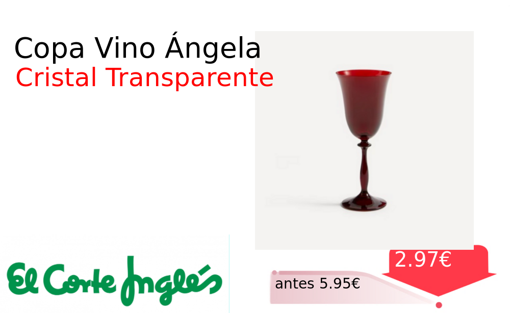 Mitad de precio✂️ Copa Vino Ángela❗️🆕 #Elcorteingles 📛Precio Ya 2.97€❗️ (PVP: +5.95€) ✨Elegante copa de vino con diseño clásico perfecta para tus celebraciones y cenas especiales Fabricada con cristal transparente de calidad con diseno innovador y. cholloya.com/ANGELA_COPA_VIN