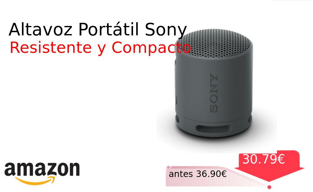 Buen Precio✨ Altavoz Portátil Sony❗️🆕 #Amazon 🇪🇸 📛Precio Ya 30.79€❗️ (PVP: +36.90€) ✨Altavoz Bluetooth compacto resistente al agua y polvo Batería de larga duración con correa adaptable Diseño ligero y calidad de sonido premium. cholloya.com/SONY_XB100