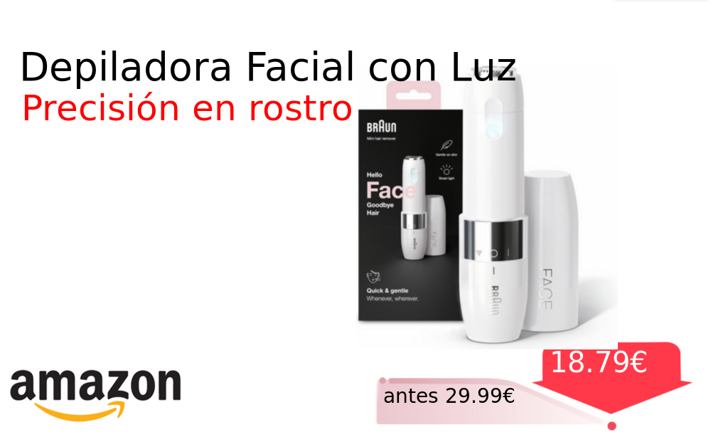 Más de un 30% 🚀 Depiladora Facial con Luz❗️🆕 #Amazon 🇪🇸 📛Precio Ya 18.79€❗️ (PVP: +29.99€) ✨Depiladora facial con luz integrada para eliminar vello con precisión en labio superior barbilla y mejillas Diseño compacto y eficaz con diseno innovador y. cholloya.com/BRAUN_FS1000