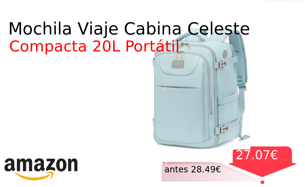 Buen Precio✨ Mochila Viaje Cabina Celeste❗️🆕 #Amazon 🇪🇸 📛Precio Ya 27.07€❗️ (PVP: +28.49€) ✨Mochila de cabina compacta ideal para viajes con diseño celeste y capacidad 20L Compatible con portátiles de 14 pulgadas fabricada con materiales premium de. cholloya.com/LYNXCHER_CABINA
