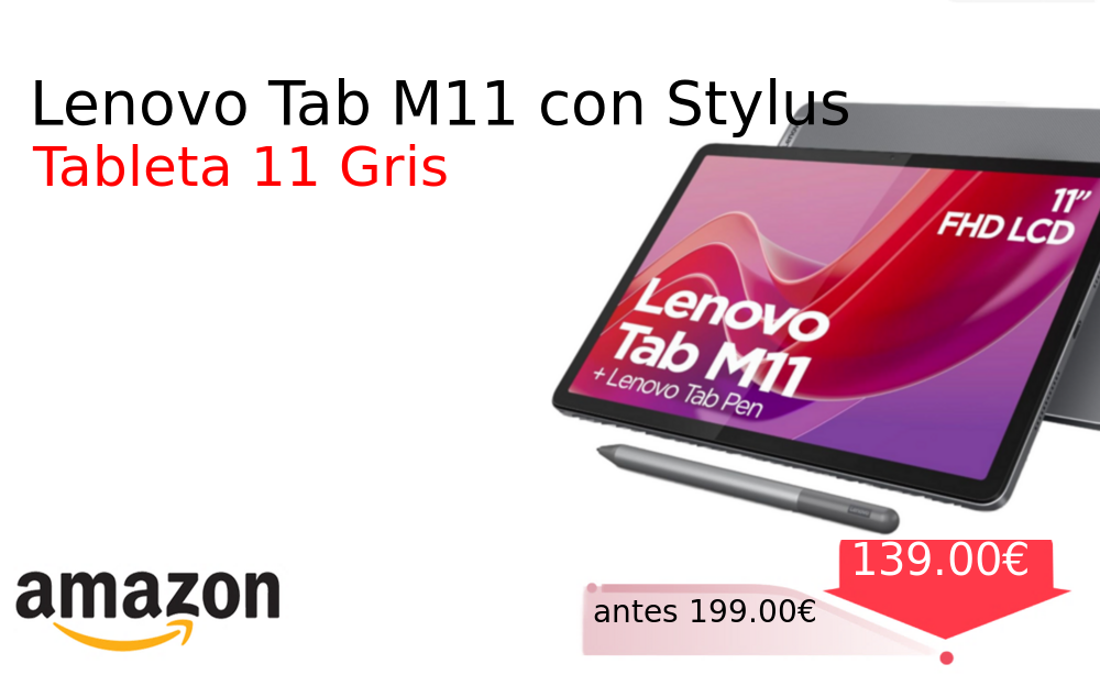 Más de un 30% 🚀 Lenovo Tab M11 con Stylus❗️🆕 #Amazon 🇪🇸 📛Precio Ya 139.00€❗️ (PVP: +199.00€) ✨Tableta con pantalla táctil de 11 pulgadas procesador MediaTek G88 y 4 GB RAM Incluye lápiz digital para creatividad y productividad sobre Android 13. cholloya.com/TAB_M11_STYLUS