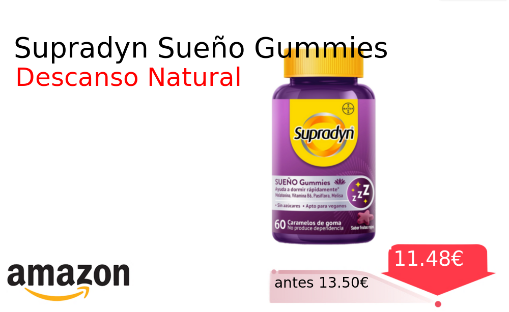 Buen Precio✨ Supradyn Sueño Gummies❗️🆕 #Amazon 🇪🇸 📛Precio Ya 11.48€❗️ (PVP: +13.50€) ✨Gummies con melatonina y extractos naturales que favorecen un descanso reparador Formulación con vitamina B6 pasiflora y melisa para dormir mejor cada noche. cholloya.com/SUP_SUE_O_GUMMI