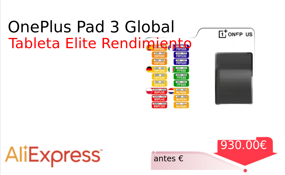 Buen Precio✨ OnePlus Pad 3 Global❗️🆕 #AliExpress 📛Precio Ya 930.00€❗️ (PVP: +€) ✨Tableta premium con pantalla 13 2 3 4K 144Hz procesador Snapdragon 8 Elite ocho altavoces y conectividad Wi-Fi 7 Sistema Android 15 para máximo. cholloya.com/ONEPLUS_PAD_3