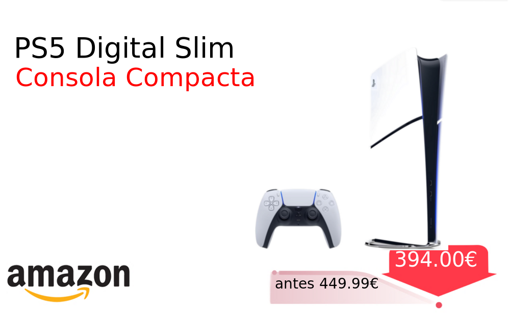 Buen Precio✨ PS5 Digital Slim❗️🆕 #Amazon 🇪🇸 📛Precio Ya 394.00€❗️ (PVP: +449.99€) ✨Consola digital de última generación con diseño compacto y elegante Rendimiento excepcional para disfrutar de experiencias de juego inmersivas y entretenimiento de alta calidad. cholloya.com/PS5_DIGITAL_SLI