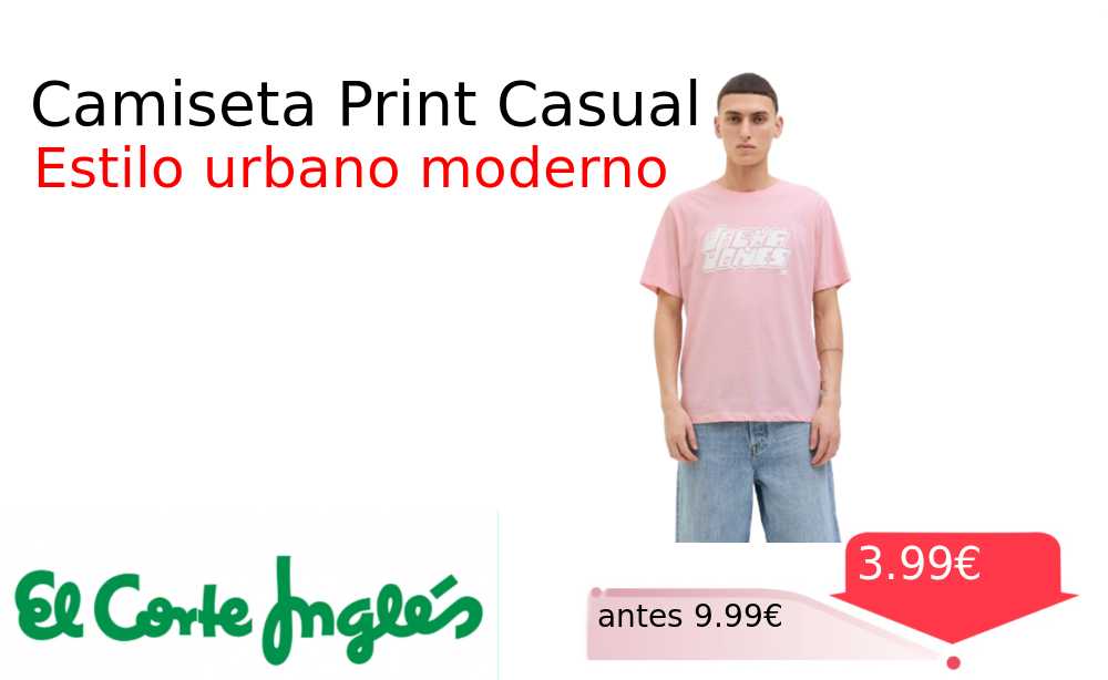 Mitad de precio✂️ Camiseta Print Casual❗️🆕 #Elcorteingles 📛Precio Ya 3.99€❗️ (PVP: +9.99€) ✨Camiseta básica de manga corta con diseño estampado en el frente Material suave y cómodo ideal para looks casuales diarios con diseno innovador y. cholloya.com/JACKJONES_PRINT