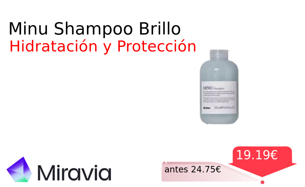 Buen Precio✨ Minu Shampoo Brillo❗️🆕 #Miravia 📛Precio Ya 19.19€❗️ (PVP: +24.75€) ✨Champú nutritivo que hidrata y protege el cabello aportando un brillo espectacular con ingredientes de calidad profesional con diseno innovador y funcional. cholloya.com/DAVINES_MINU_SH