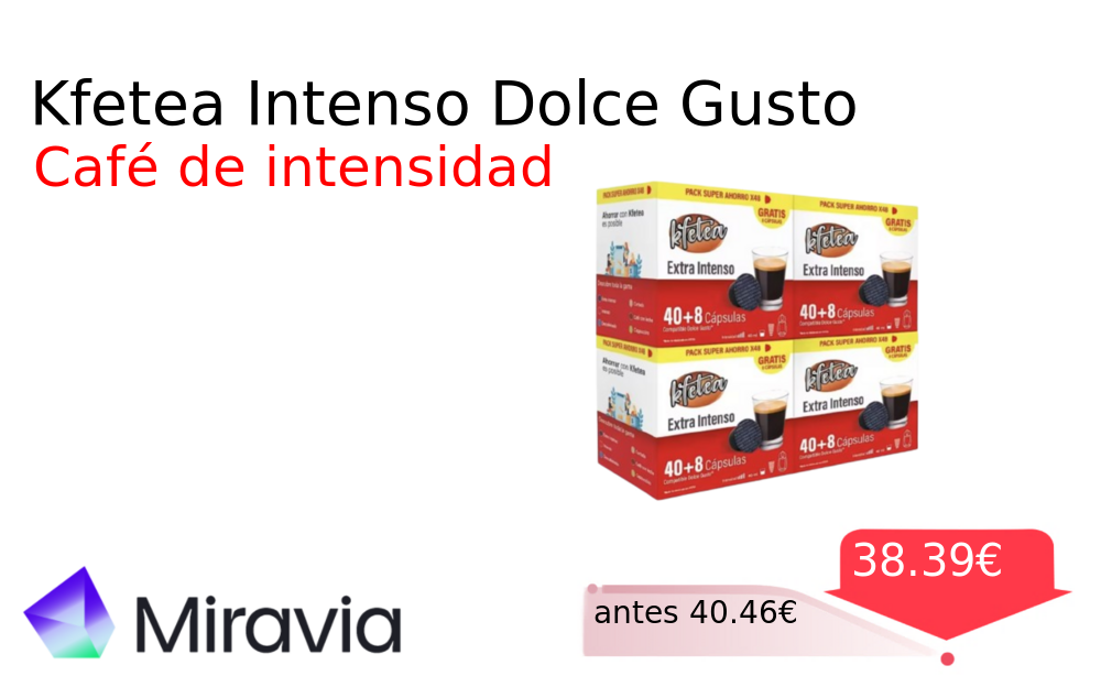Buen Precio✨ Kfetea Intenso Dolce Gusto❗️🆕 #Miravia 📛Precio Ya 38.39€❗️ (PVP: +40.46€) ✨Cápsulas de café intenso compatibles con máquinas Dolce Gusto Disfruta de un sabor robusto y aromático en cada taza Perfecto para empezar el día. cholloya.com/EXTRA_KFETEA_IN