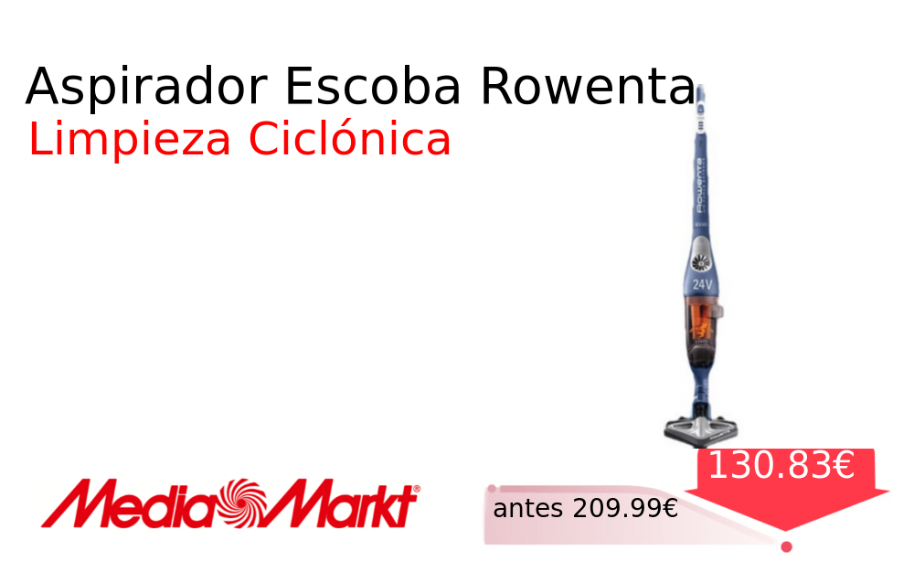 Más de un 30% 🚀 Aspirador Escoba Rowenta❗️🆕 #MediaMarkt 📛Precio Ya 130.83€❗️ (PVP: +209.99€) ✨Aspirador escoba Rowenta con sistema ciclónico extremo Producto reacondicionado con garantía completa perfecto para limpieza profunda sin polvo en tu hogar. cholloya.com/ROWENTA_RH8771