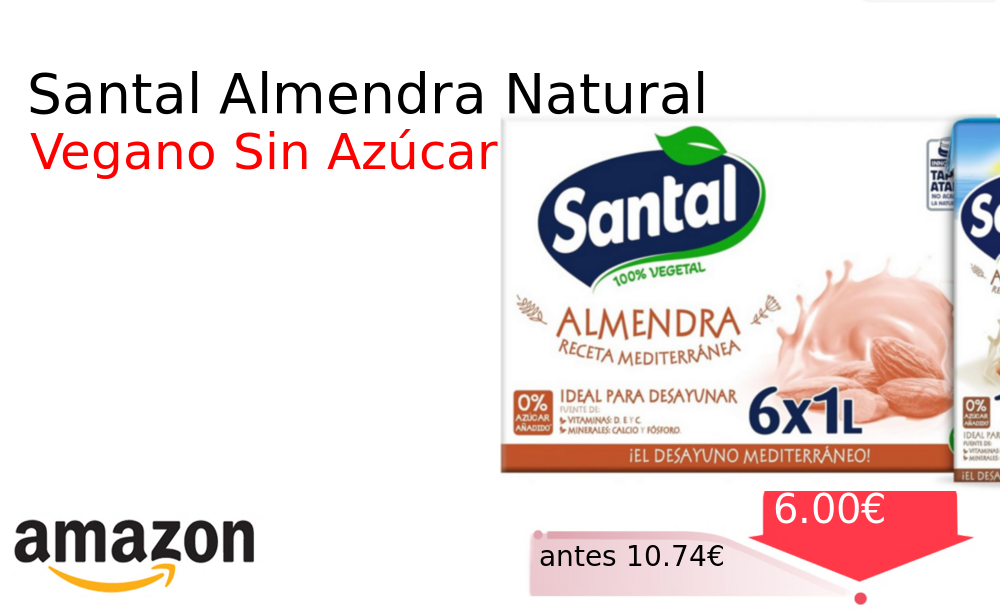 40% 📉 Vaya descuentazo‼‼ Santal Almendra Natural❗️🆕 #Amazon 🇪🇸 📛Precio Ya 6.00€❗️ (PVP: +10.74€) ✨Bebida vegetal de almendra sin azúcares añadidos ideal para café y desayunos Alternativa vegana a la leche con calidad premium en práctico pack. cholloya.com/SANTAL_ALMENDRA
