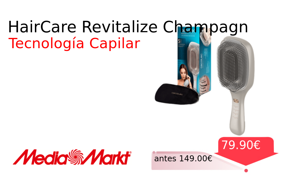 40% 📉 Vaya descuentazo‼‼ HairCare Revitalize Champagn❗️🆕 #MediaMarkt 📛Precio Ya 79.90€❗️ (PVP: +149.00€) ✨Cepillo reparador con 5 tecnologías avanzadas que revitalizan el cabello Vibración iones microcorrientes láser y luz LED regeneran cutículas con diseno innovador y funcional. cholloya.com/CECOTEC_HAIRCAR