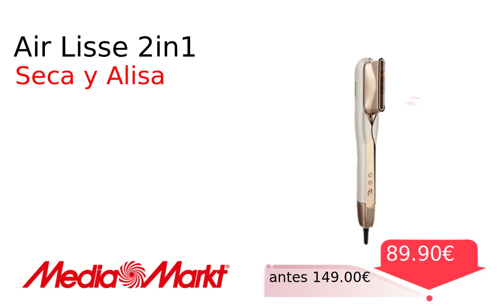 Más de un 30% 🚀 Air Lisse 2in1❗️🆕 #MediaMarkt 📛Precio Ya 89.90€❗️ (PVP: +149.00€) ✨Plancha con aire que seca y alisa simultáneamente Placas cerámica y keratina función plasma dos cabezales imantados para resultados profesionales. cholloya.com/CECOTEC_AIR_LIS