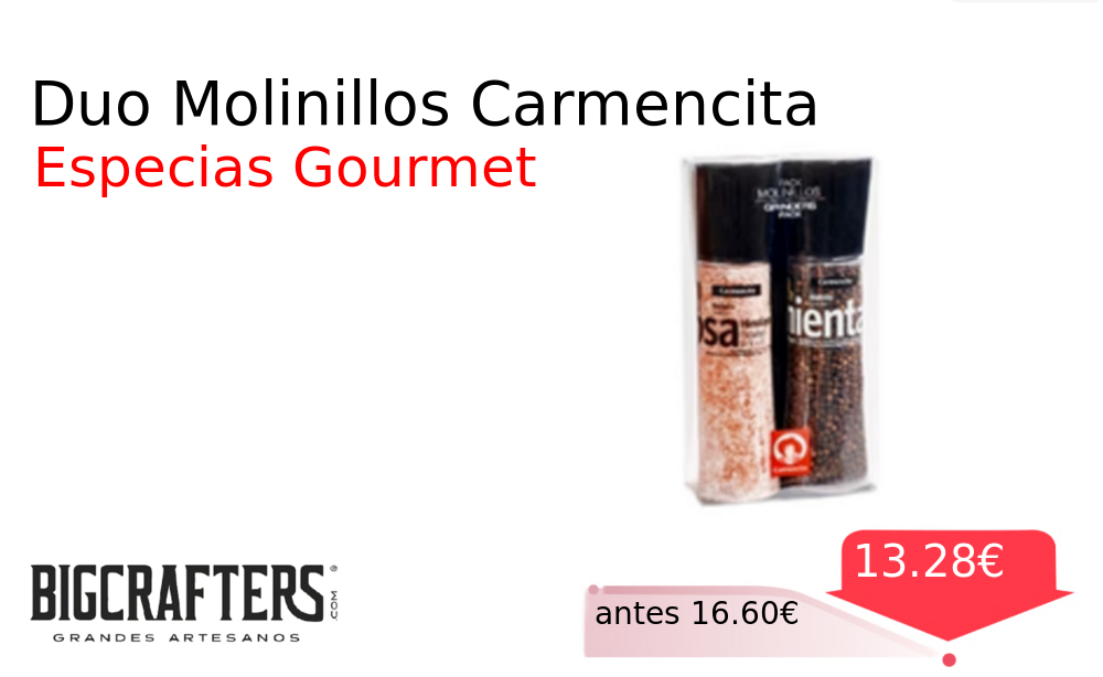 Buen Precio✨ Duo Molinillos Carmencita❗️🆕 #BigCrafters 📛Precio Ya 13.28€❗️ (PVP: +16.60€) ✨Molinillos de pimienta negra y sal rosa del Himalaya Aromas intensos y puros perfectos para realzar tus platos con calidad premium. cholloya.com/MOLINILLOS_ESPE