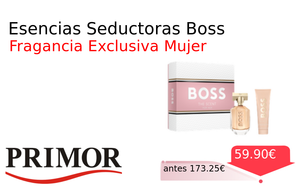 Mitad de precio✂️ Esencias Seductoras Boss❗️🆕 #Primor 📛Precio Ya 59.90€❗️ (PVP: +173.25€) ✨Una fragancia cautivadora y femenina que combina notas de melocotón flor de freesia y cacao Elegancia y sensualidad en un estuche exclusivo. cholloya.com/BOSS_SCENT_HER
