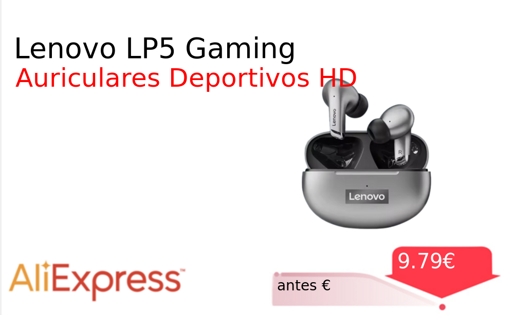 Buen Precio✨ Lenovo LP5 Gaming❗️🆕 #AliExpress 📛Precio Ya 9.79€❗️ (PVP: +€) ✨Auriculares inalámbricos Lenovo LP5 con sonido HD para gaming y deporte Batería de larga duración y micrófono integrado para llamadas nítidas Diseño cómodo y. cholloya.com/LENOVO_LP5_TWS