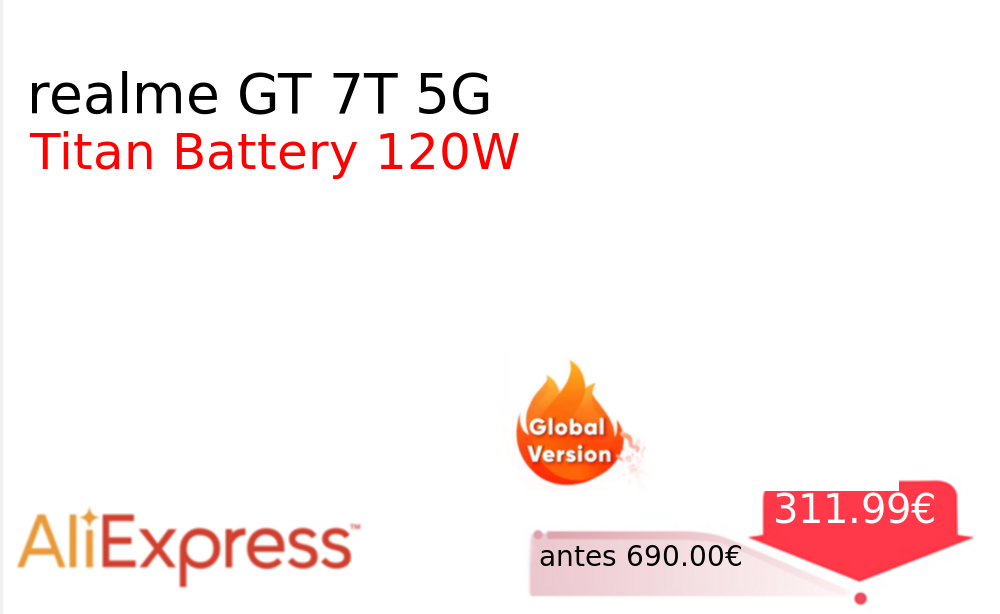 Mitad de precio✂️ realme GT 7T 5G❗️🆕 #AliExpress 📛Precio Ya 311.99€❗️ (PVP: +690.00€) ✨Smartphone 5G con procesador MediaTek 8400-MAX y batería Titan de 7000mAh Pantalla 6 8 pulgadas 120Hz y carga ultrarrápida de 120W Versión global. cholloya.com/REALME_GT_7T_5G