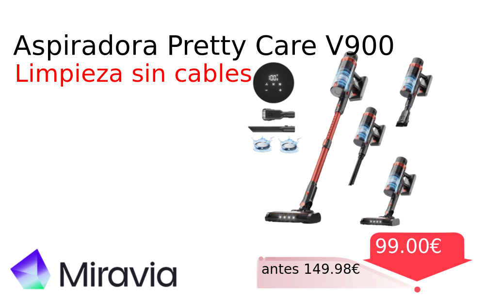 ¡Toma descuento!🤯 Aspiradora Pretty Care V900❗️🆕 #Miravia 📛Precio Ya 99.00€❗️ (PVP: +149.98€) ✨Aspiradora de mano con batería extraíble y 520W de potencia Pantalla táctil LED y succión de 52000PA para hogar coche y pelo de mascotas. cholloya.com/PRETTYCARE_V900