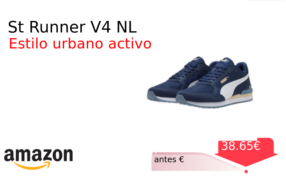 Buen Precio✨ St Runner V4 NL❗️🆕 #Amazon 🇪🇸 📛Precio Ya 38.65€❗️ (PVP: +€) ✨Zapatillas unisex de lona con superposiciones de gamuza Ajuste regular y suela de goma para máxima comodidad Diseño en blanco y azul persiana ideal. cholloya.com/PUMA_ST_RUNNER_