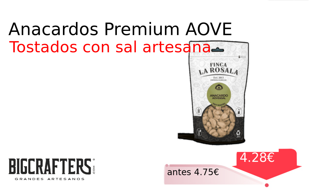 Buen Precio✨ Anacardos Premium AOVE❗️🆕 #BigCrafters 📛Precio Ya 4.28€❗️ (PVP: +4.75€) ✨Anacardos tostados con aceite de oliva virgen extra y sal artesanal de Finca La Rosala Producto natural sin desperdicio ideal para picar entre horas. cholloya.com/ANACARDOS_AOVE_