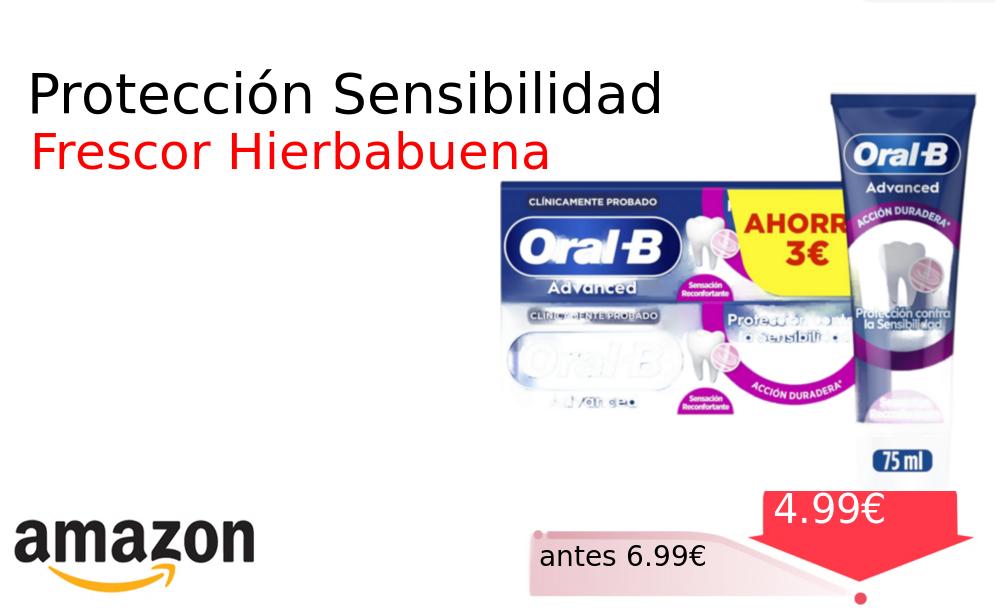 Buen Precio✨ Protección Sensibilidad❗️🆕 #Amazon 🇪🇸 📛Precio Ya 4.99€❗️ (PVP: +6.99€) ✨Pasta dental con flúor que ofrece protección avanzada para dientes sensibles Proporciona una sensación reconfortante con su fresco sabor a hierbabuena y eucalipto en. cholloya.com/ORALB_SENSIBILI