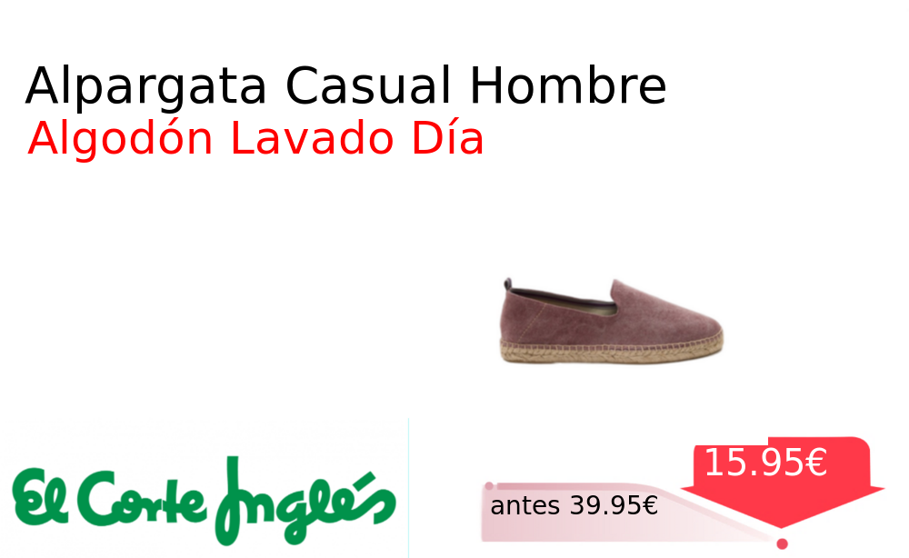 Mitad de precio✂️ Alpargata Casual Hombre❗️🆕 #Elcorteingles 📛Precio Ya 15.95€❗️ (PVP: +39.95€) ✨Alpargata masculina confeccionada en suave algodón lavado ideal para un look casual y cómodo durante todo el día Diseño versátil con diseno innovador y. cholloya.com/DUSTIN_ALPARGAT
