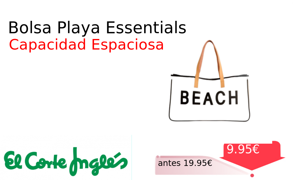 Mitad de precio✂️ Bolsa Playa Essentials❗️🆕 #Elcorteingles 📛Precio Ya 9.95€❗️ (PVP: +19.95€) ✨Bolsa playera de diseño funcional con amplio espacio interior Ideal para llevar tus esenciales de verano a la orilla del mar Fabricada con materiales. cholloya.com/BASICS_PLAYA