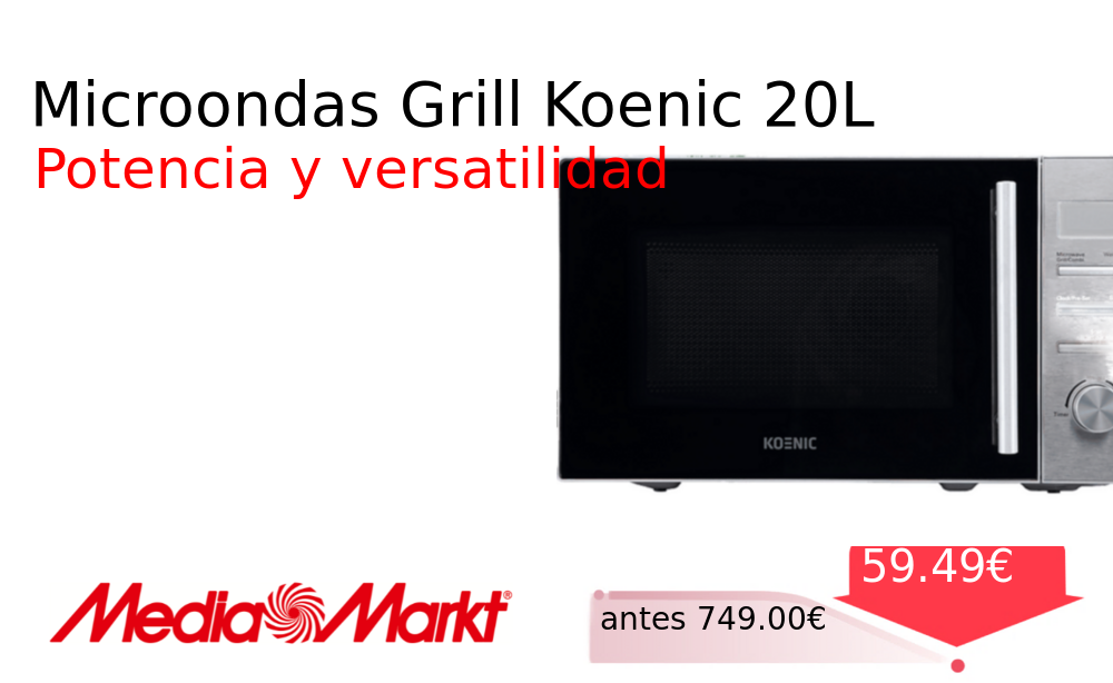 Mitad de precio✂️ Microondas Grill Koenic 20L❗️🆕 #MediaMarkt 📛Precio Ya 59.49€❗️ (PVP: +749.00€) ✨Microondas con grill Koenic de 20 litros y acero inoxidable Cinco potencias y ocho programas automáticos para cocinar asar y descongelar Reacondicionado con garantía. cholloya.com/KOENIC_MICROOND