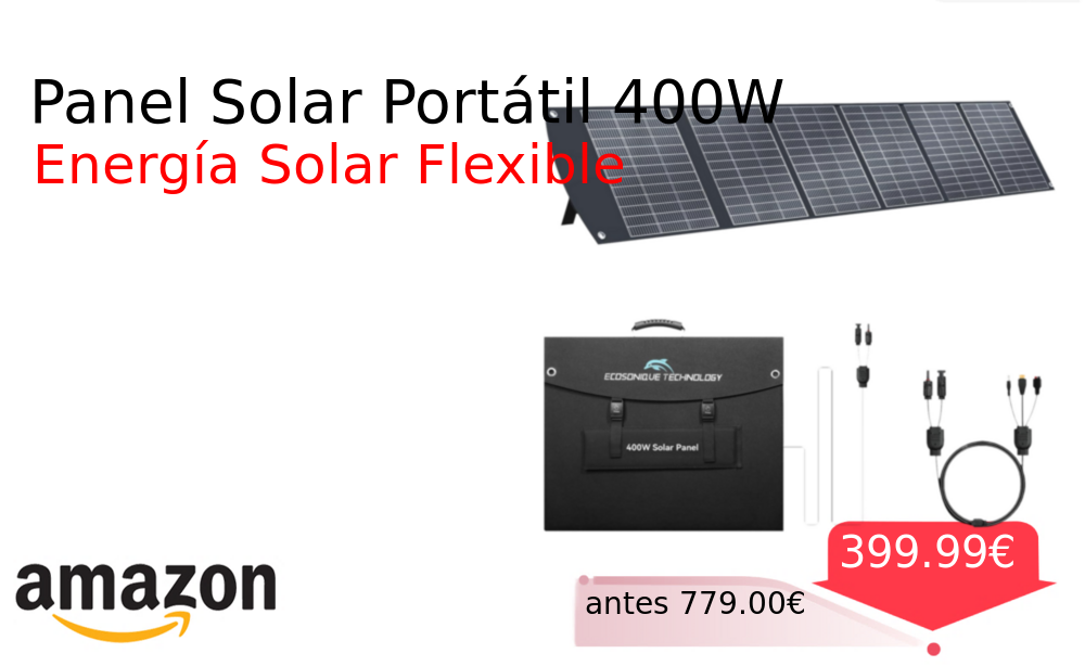 40% 📉 Vaya descuentazo‼‼ Panel Solar Portátil 400W❗️🆕 #Amazon 🇪🇸 📛Precio Ya 399.99€❗️ (PVP: +779.00€) ✨Panel solar plegable con conexión MC4 de 400W ligero y versátil para alimentar dispositivos durante actividades al aire libre y emergencias. cholloya.com/ECOSONIQUE_400W