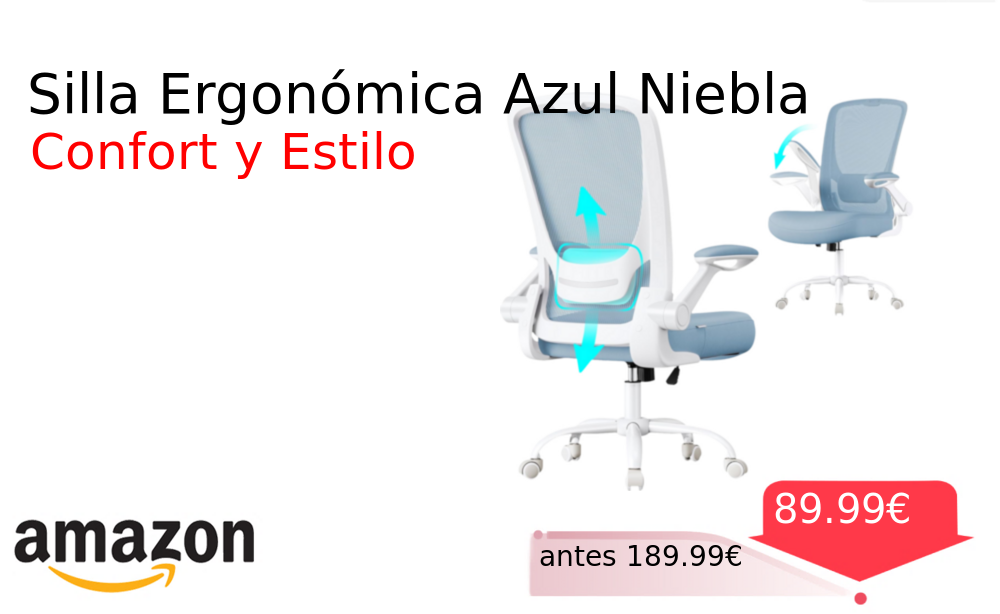 Mitad de precio✂️ Silla Ergonómica Azul Niebla❗️🆕 #Amazon 🇪🇸 📛Precio Ya 89.99€❗️ (PVP: +189.99€) ✨Silla ergonómica con respaldo de malla transpirable y soporte lumbar ajustable Brazos abatibles y función oscilante para máximo confort durante largas jornadas. cholloya.com/SILLA_ERGONOMIC