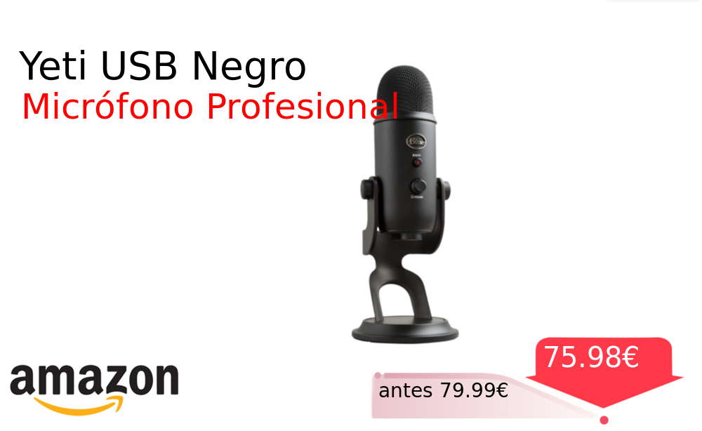 Buen Precio✨ Yeti USB Negro❗️🆕 #Amazon 🇪🇸 📛Precio Ya 75.98€❗️ (PVP: +79.99€) ✨Micrófono USB profesional para grabaciones nítidas Ideal streaming podcasting y gaming Calidad premium con soporte ajustable y conexión plug play inmediata. cholloya.com/BLUE_YETI_USB
