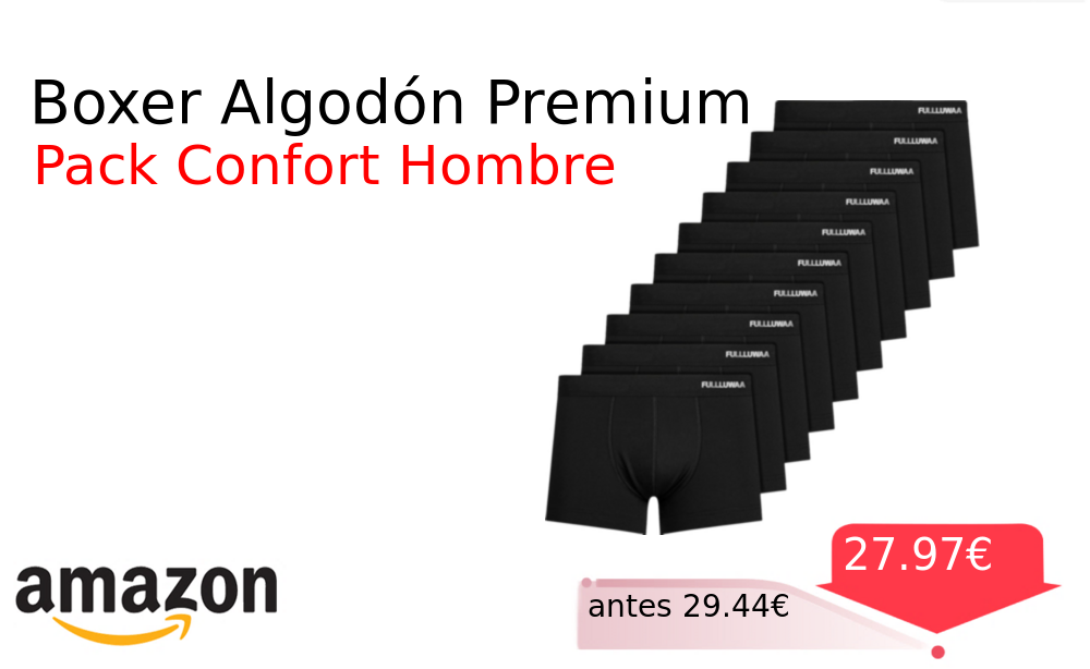 Buen Precio✨ Boxer Algodón Premium❗️🆕 #Amazon 🇪🇸 📛Precio Ya 27.97€❗️ (PVP: +29.44€) ✨Calzoncillos boxer de algodón premium para hombre cómodos y ajustados Pack de diez unidades con calidad superior y diseño ergonómico diario. cholloya.com/BOXER_ALGODON_P