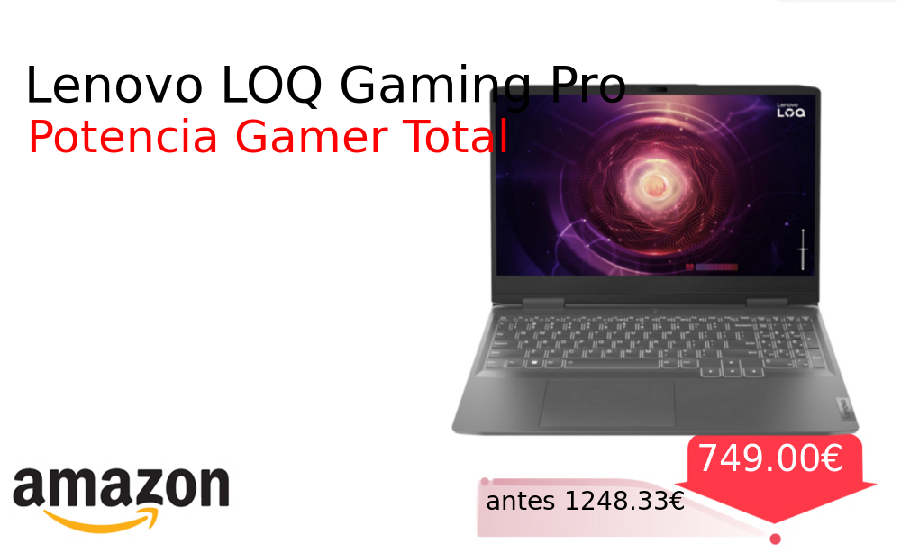 Más de un 30% 🚀 Lenovo LOQ Gaming Pro❗️🆕 #Amazon 🇪🇸 📛Precio Ya 749.00€❗️ (PVP: +1248.33€) ✨Portátil gaming con pantalla 15 6 FHD 144Hz procesador AMD Ryzen 7 y gráfica NVIDIA RTX 4050 Rendimiento excepcional para jugadores exigentes memoria rápida. cholloya.com/LENOVO_LOQ_GEN8