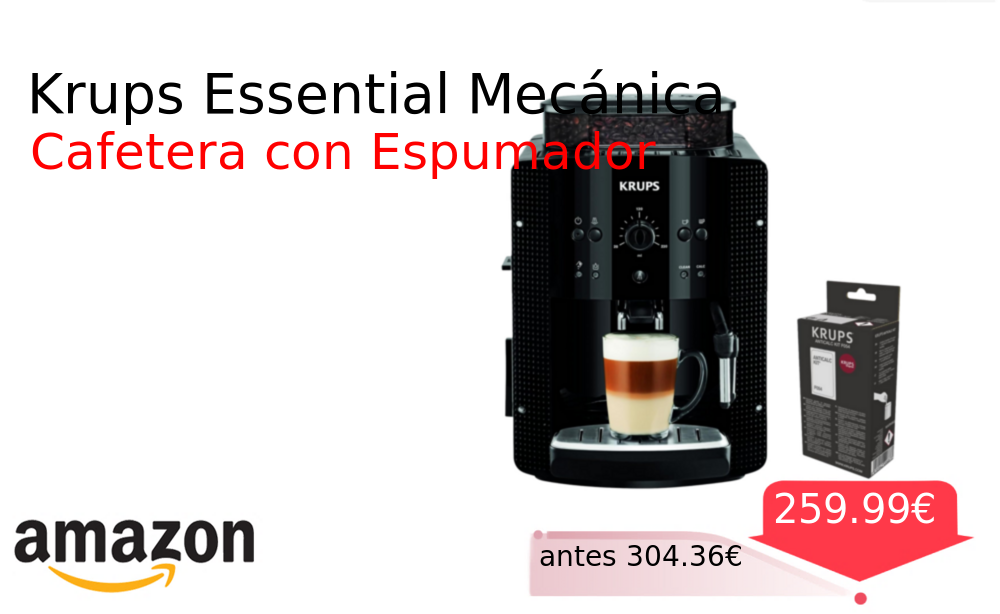 Buen Precio✨ Krups Essential Mecánica❗️🆕 #Amazon 🇪🇸 📛Precio Ya 259.99€❗️ (PVP: +304.36€) ✨Cafetera superautomática con molinillo mecánico integrado y espumador de leche Incluye práctico kit de descalcificación para un mantenimiento sencillo y óptimo. cholloya.com/KRUPS_EA8108OM