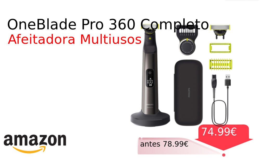 Buen Precio✨ OneBlade Pro 360 Completo❗️🆕 #Amazon 🇪🇸 📛Precio Ya 74.99€❗️ (PVP: +78.99€) ✨Afeitadora y recortadora eléctrica facial y corporal con tecnología avanzada Incluye cuchillas 360º peine de longitudes y accesorios completos para un cuidado preciso. cholloya.com/PHILIPS_ONEBLAD