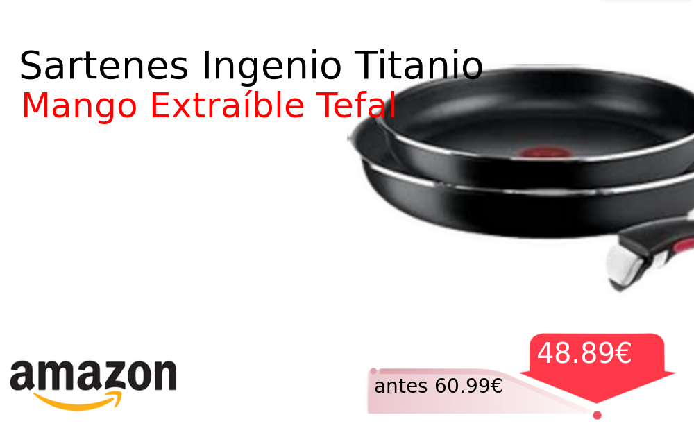 Buen Precio✨ Sartenes Ingenio Titanio❗️🆕 #Amazon 🇪🇸 📛Precio Ya 48.89€❗️ (PVP: +60.99€) ✨Juego de sartenes con mango extraíble y revestimiento titanio antiadherente Incluye indicador de temperatura Thermo-signal apto para lavavajillas y horno Calidad premium garantizada. cholloya.com/TEFAL_INGENIO_S