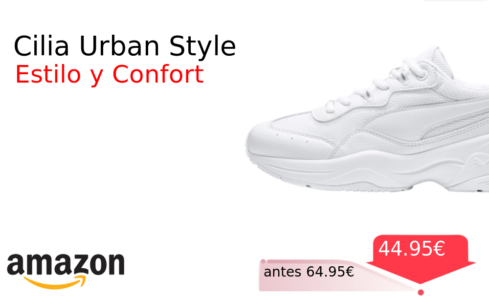 Más de un 30% 🚀 Cilia Urban Comfort❗️🆕 #Amazon 🇪🇸 📛Precio Ya 44.95€❗️ (PVP: +64.95€) ✨Zapatillas femeninas con diseño moderno y confort excepcional Materiales de calidad superior para tu día a día con estilo urbano. cholloya.com/PUMA_CILIA