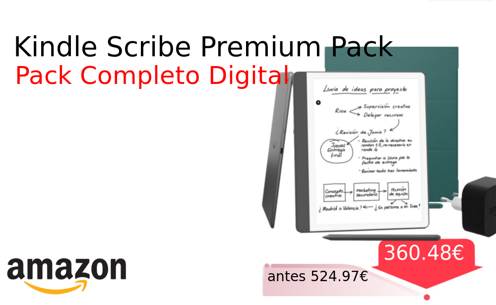 Más de un 30% 🚀 Kindle Scribe Premium Pack❗️🆕 #Amazon 🇪🇸 📛Precio Ya 360.48€❗️ (PVP: +524.97€) ✨Tableta digital con pantalla de tinta electrónica avanzada incluye funda ecológica y cargador rápido para escritura y lectura prolongadas con tecnologia de imagen avanzada. cholloya.com/KINDLE_SCRIBE_P
