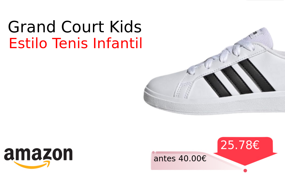 Más de un 30% 🚀 Grand Court Kids❗️🆕 #Amazon 🇪🇸 📛Precio Ya 25.78€❗️ (PVP: +40.00€) ✨Zapatillas unisex infantiles adidas con diseño tenis lifestyle Calidad premium y cordones para un ajuste perfecto en el día a día. cholloya.com/ADIDAS_GRAND_CO
