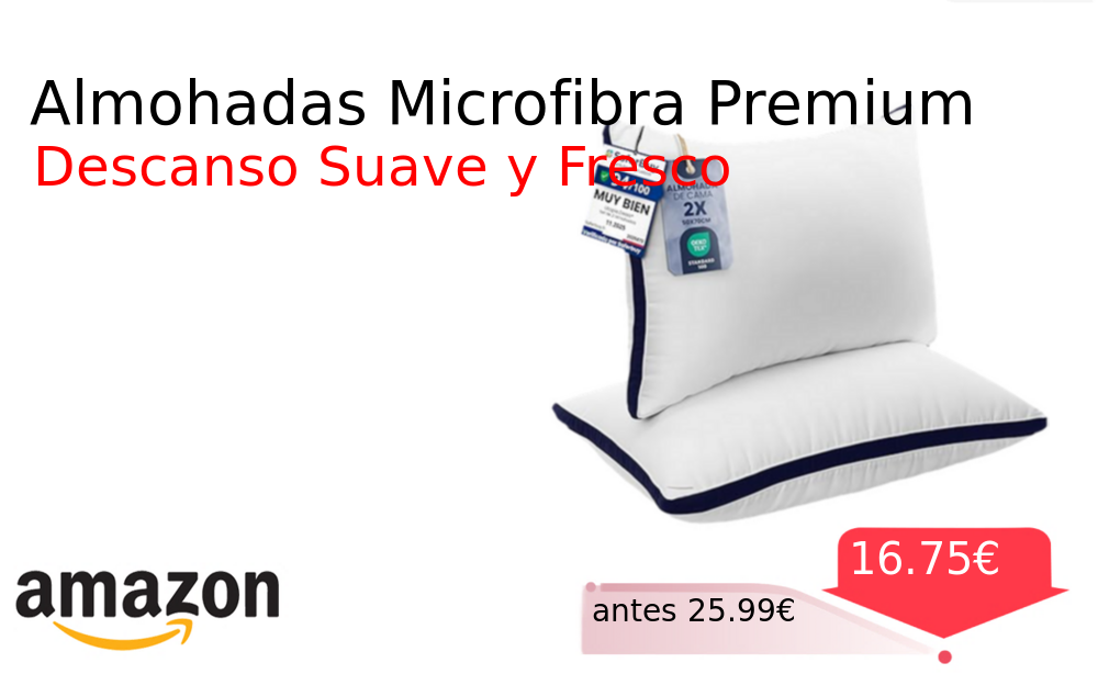 Más de un 30% 🚀 Almohadas Microfibra Premium❗️🆕 #Amazon 🇪🇸 📛Precio Ya 16.75€❗️ (PVP: +25.99€) ✨Dos almohadas de microfibra azul marino con relleno transpirable de poliéster 3D Suaves y de calidad premium para un descanso cómodo y reparador. cholloya.com/ALMOHADAS_MICRO