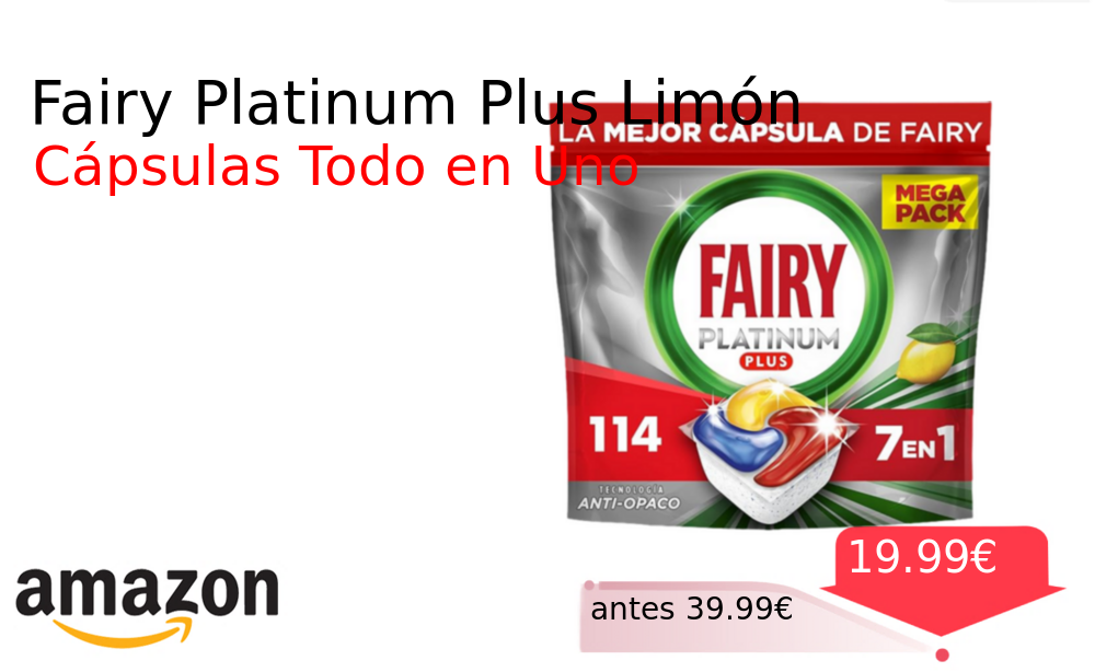 Mitad de precio✂️ Fairy Platinum Plus Limón❗️🆕 #Amazon 🇪🇸 📛Precio Ya 19.99€❗️ (PVP: +39.99€) ✨Cápsulas todo en uno con poder limón Eliminan la cal y la falta de brillo dejando tu vajilla impecable y como nueva tras cada. cholloya.com/FAIRY_PLATINUM_