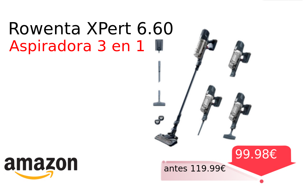 Buen Precio✨ Rowenta XPert 6.60❗️🆕 #Amazon 🇪🇸 📛Precio Ya 99.98€❗️ (PVP: +119.99€) ✨Aspiradora escoba sin cable con tres funciones en un solo aparato Ligera y versátil para multiespacios incluye batería de litio y gatillo de potencia. cholloya.com/ROWENTA_XPERT_6
